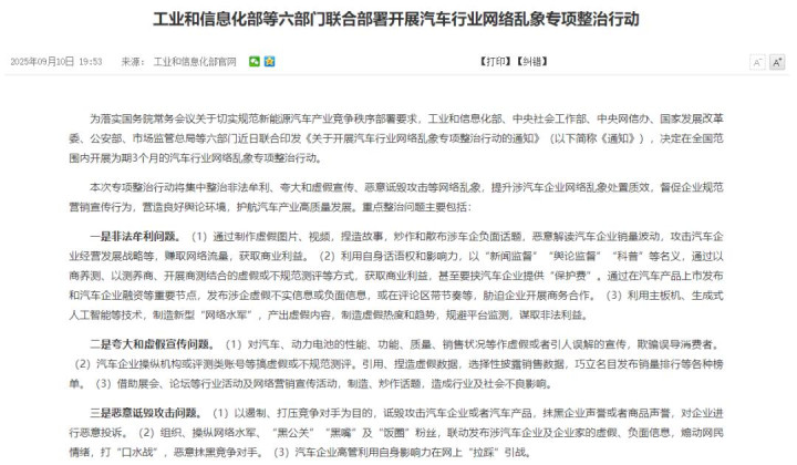 2025年9月,工业和信息化部等六部门启动为期三个月的专项整治,重点打击夸大、虚假宣传行为。其中包括引用、捏造虚假数据,选择性披露销售数据,巧立名目发布销量排行等各种榜单。不少专家呼吁建立透明机制,如比对订单与车辆上险量、完税数据,以核实真实交付情况,并对数据严重偏差的企业予以惩戒。